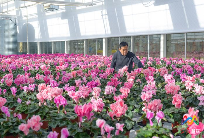 中新网山西新闻12月12日电 初冬时节,户外寒意渐浓,而长治市上党区东掌村农业观光开发公司的智慧花卉大棚内,却暖意融融、生机盎然。一盆盆仙客来按花色分区整齐摆放,粉紫、艳红的花团竞相绽放;草莓苗在基质槽中舒展鲜绿叶片,现代农业技术让 “冬日春景” 成为现实。